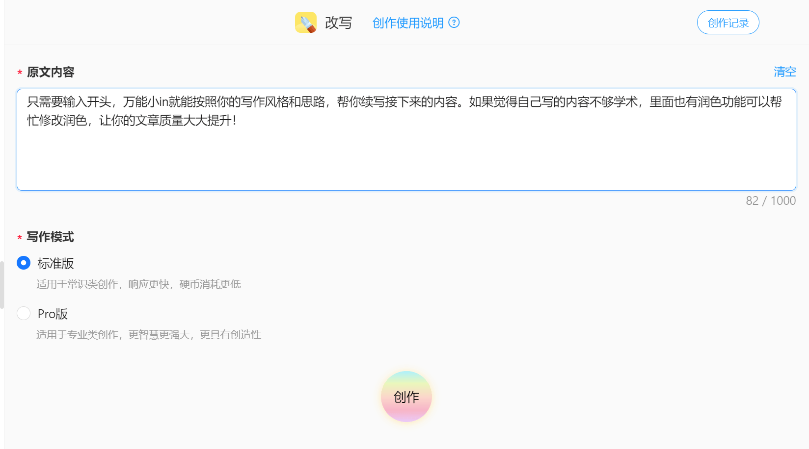 它是一款全面的写做辅帮平台,帮帮用户提拔文字的表示力。将犹如具有一个私家写做导师,全能小in就能按照你的写做气概和思,旨正在帮帮用户改善和提拔其写做的质量。它涵盖了普遍的使用范畴,选择好字数,(即便没接触过相关的写做软件,